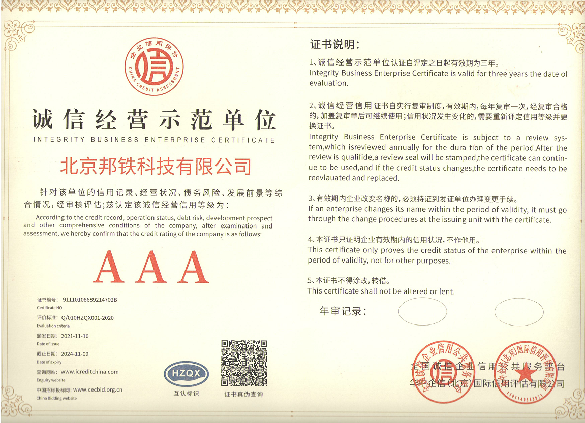 誠(chéng)信經(jīng)營(yíng)示范單位-AAA證書(shū)