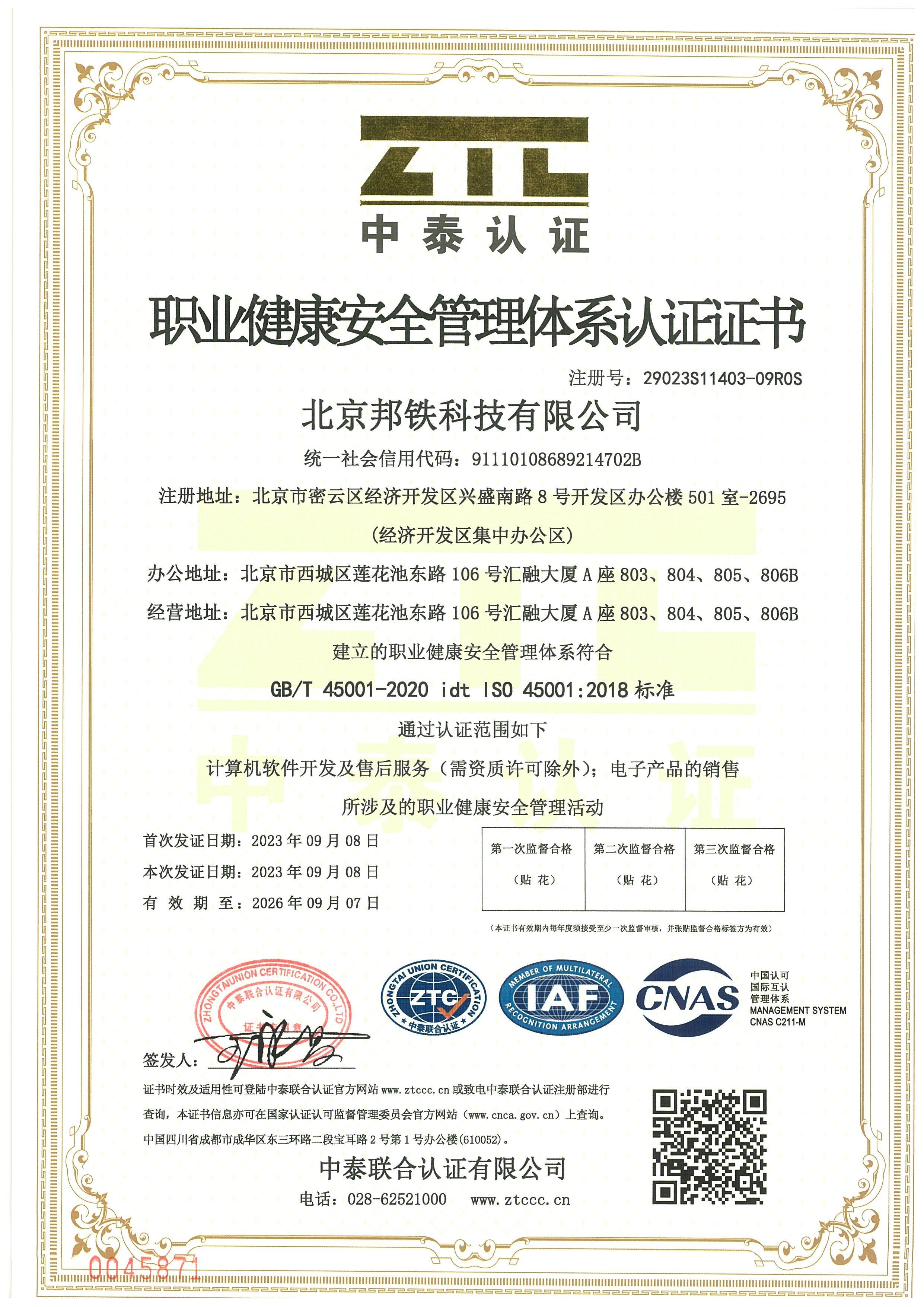 職業(yè)健康安全管理體系認(rèn)證證書(shū)