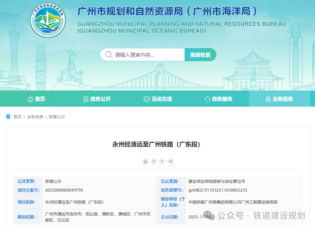 2025/11/17近日,廣州市規(guī)劃和自然資源局正式受理了永州經(jīng)清遠至廣州鐵路項目(廣東段)用地預(yù)審與選址意見書。項目用地預(yù)審與選址進入審批階段,將力爭在年底前批復(fù)可研。根據(jù)項目可研方案:永州經(jīng)清遠至廣州鐵路自在建邵永鐵...